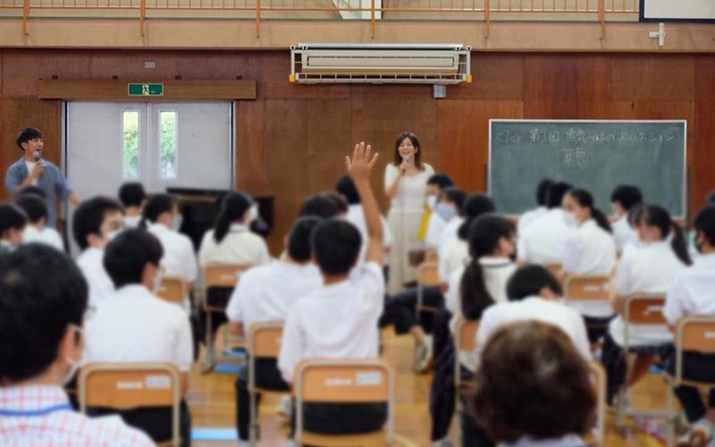 「夢を叶える授業」夢を叶えるために大切なことを、言葉と音で勇気づけながらわかりやすくお伝えしています。自己肯定感を高め、自分も周りも信頼し、勇気づけあいながら前向きにチャレンジができるようになります。(小中学校の他、幼稚園・保育園でも開催しています)